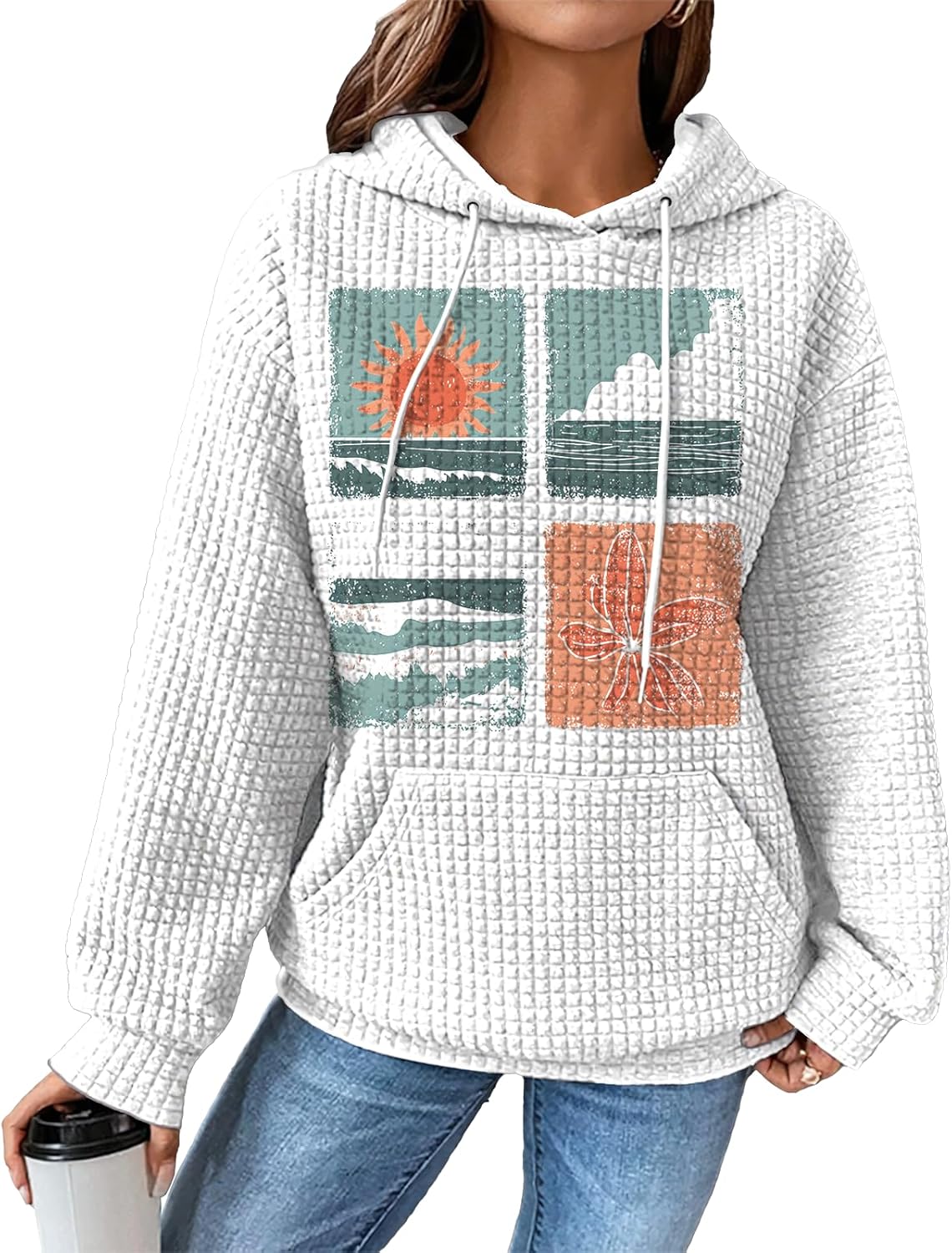 Long Sleeve Sweatshirts for Womens Oversized Hoodies with Pocket Fashion Print Fall Tops Casual Clothes Y2K