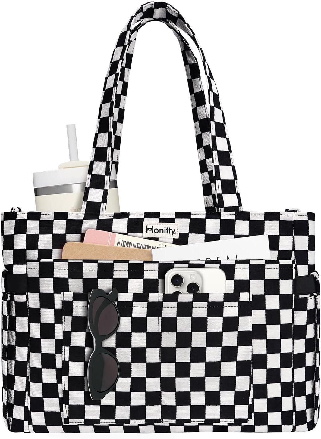 Tote Bag for Women, Corduroy Tote Bag, Large Capacity Tote Bags, Laptop Work Bags with Shoulder Strap and Cup Pocket