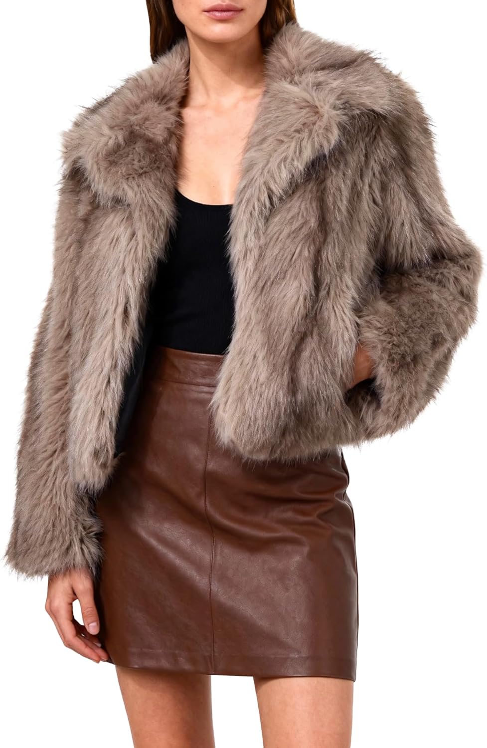 Aamzhiyu Womens Faux Fur Coats Open Front Long Sleeve Lapel Fur Jackets Pockets