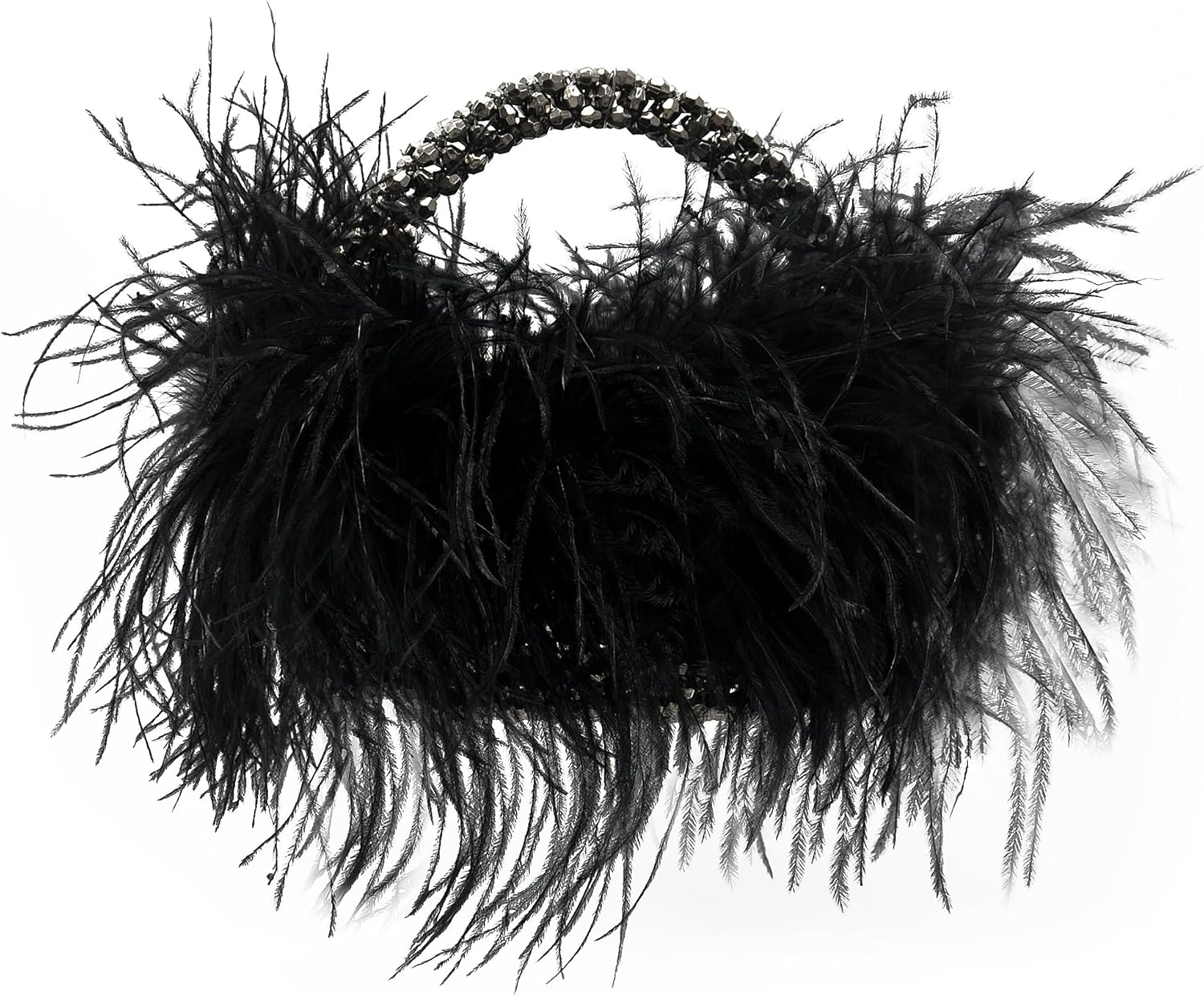 Miuco Real Natural Ostrich Feather Beaded Handbags For Women Handmade Evening Bags Clutch Purse
