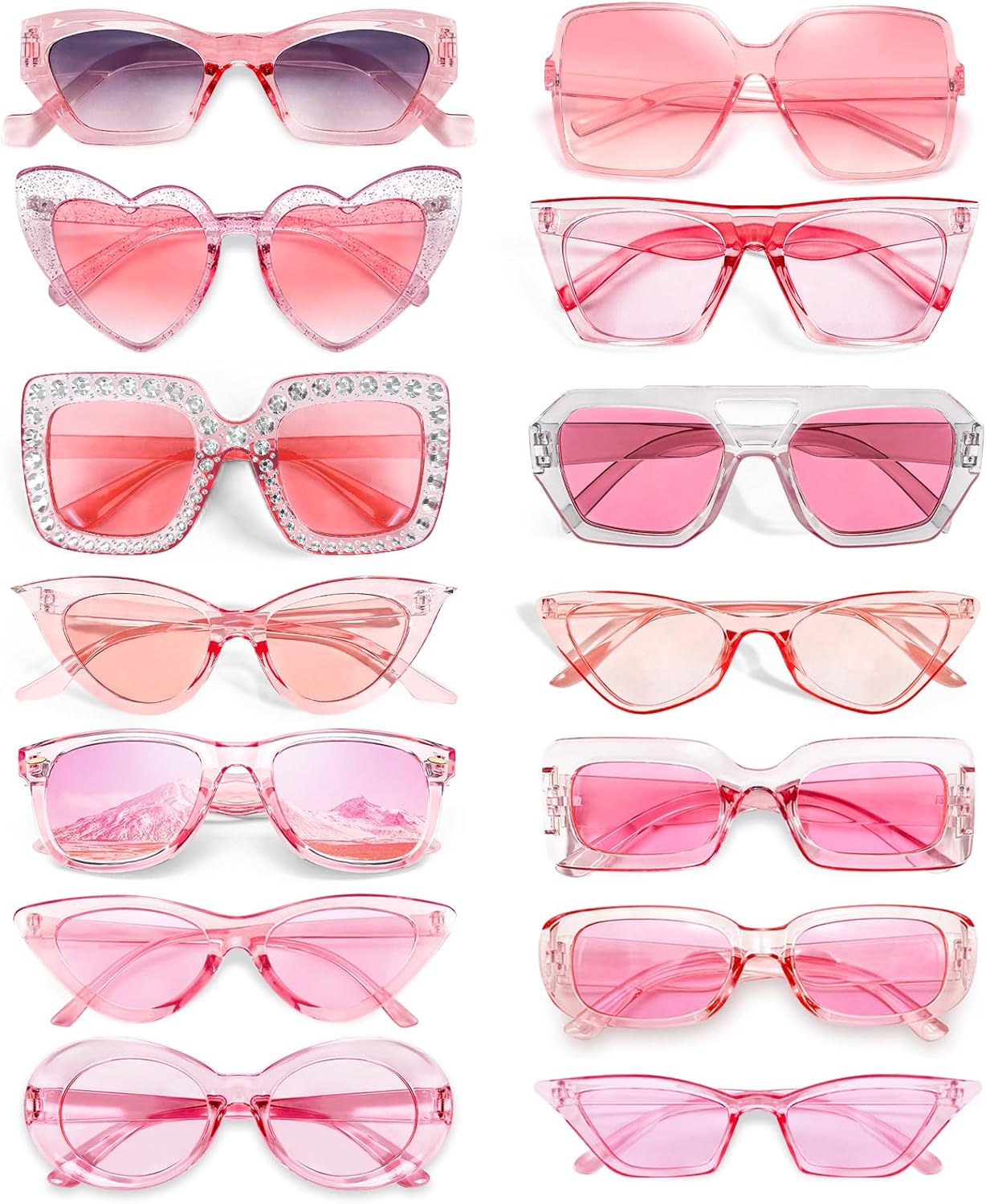 - Great Value Pack: These mixed style party sunglasses come in different color schemes, including pink, pink hotpink, black, leopard, blue, and purple. Trendy sunglasses set includes cute heart sunglasses, retro cat eye sunglasses, fun rhinestone sunglasses and many more styles. They are your indispensable fashion items