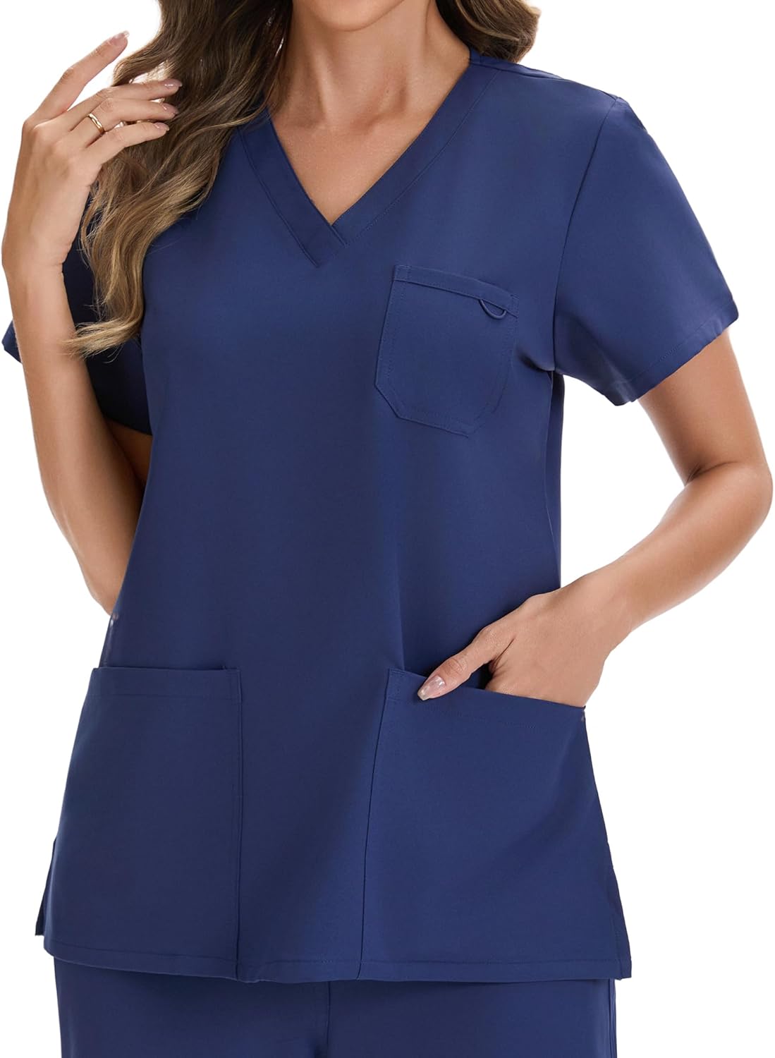 Women's Scrub Top Short Sleeve Medical Shirts Stretchy Soft Nurse Uniform V Neck Top Tee With 3 Pockets