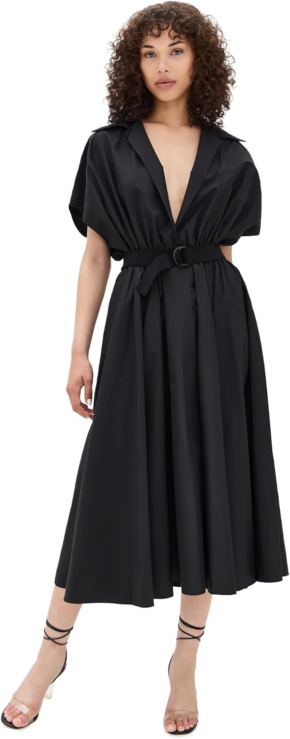 Norma Kamali Women's Belted Flared Midi Shirt Dress