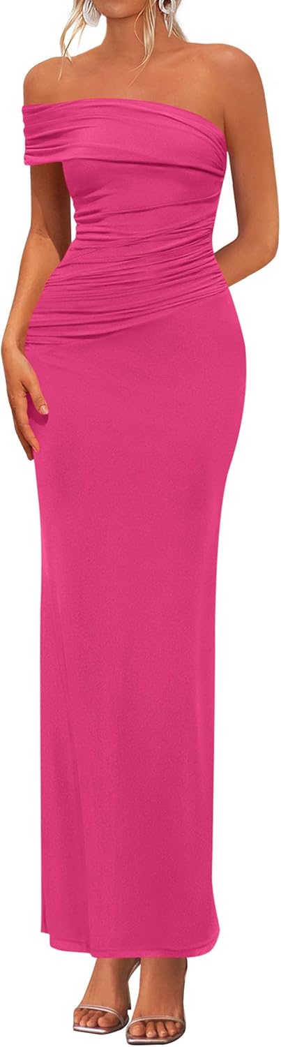 PRETTYGARDEN Women's 2026 Wedding Guest Cocktail Dresses One Off The Shoulder Ruched Bodycon Formal Maxi Party Summer Outfits