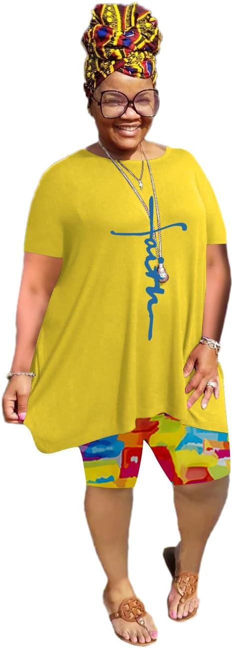 YeGine Women Plus Size 2 Piece Outfits Casual Short Sleeve Tunic Tops Shorts Sets Summer Oversized Tshirts Shorts Sweatsuits