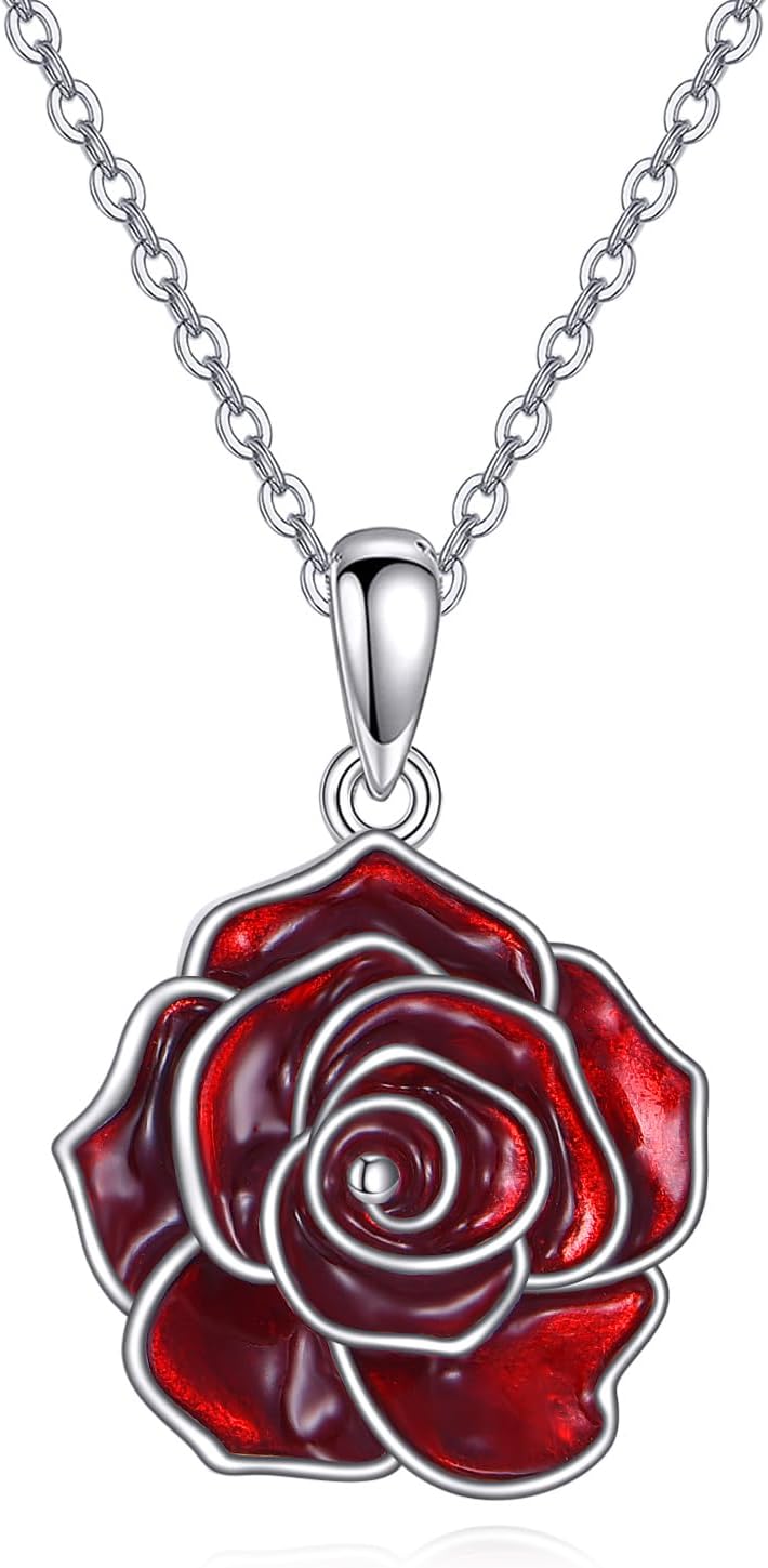 URONE Flower Necklace 925 Sterling Silver Calla Lily/Orchid/Red Rose/Poppy/Plumeria Rubra Flower Necklace Jewelry Gift for Women