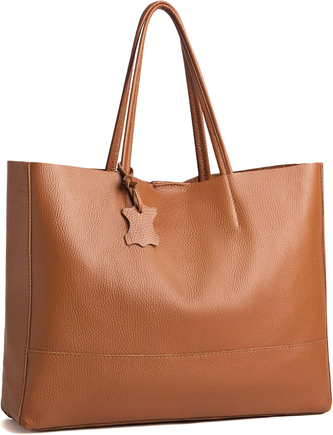 Italian Leather Tote Bag for Women - Large Shoulder Shopper, Fits 16” Laptop, Keychain Holder, Made in Italy
