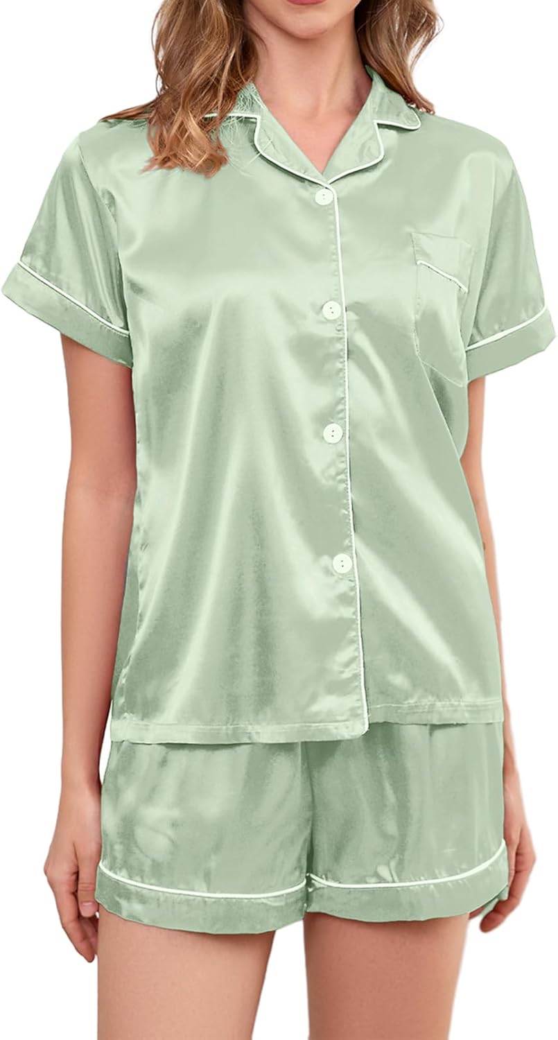 Satin Pajama Set for Women 2-Piece Satin PJ Set Button-Down Silk PJ Set - Classic Silky Pajama
