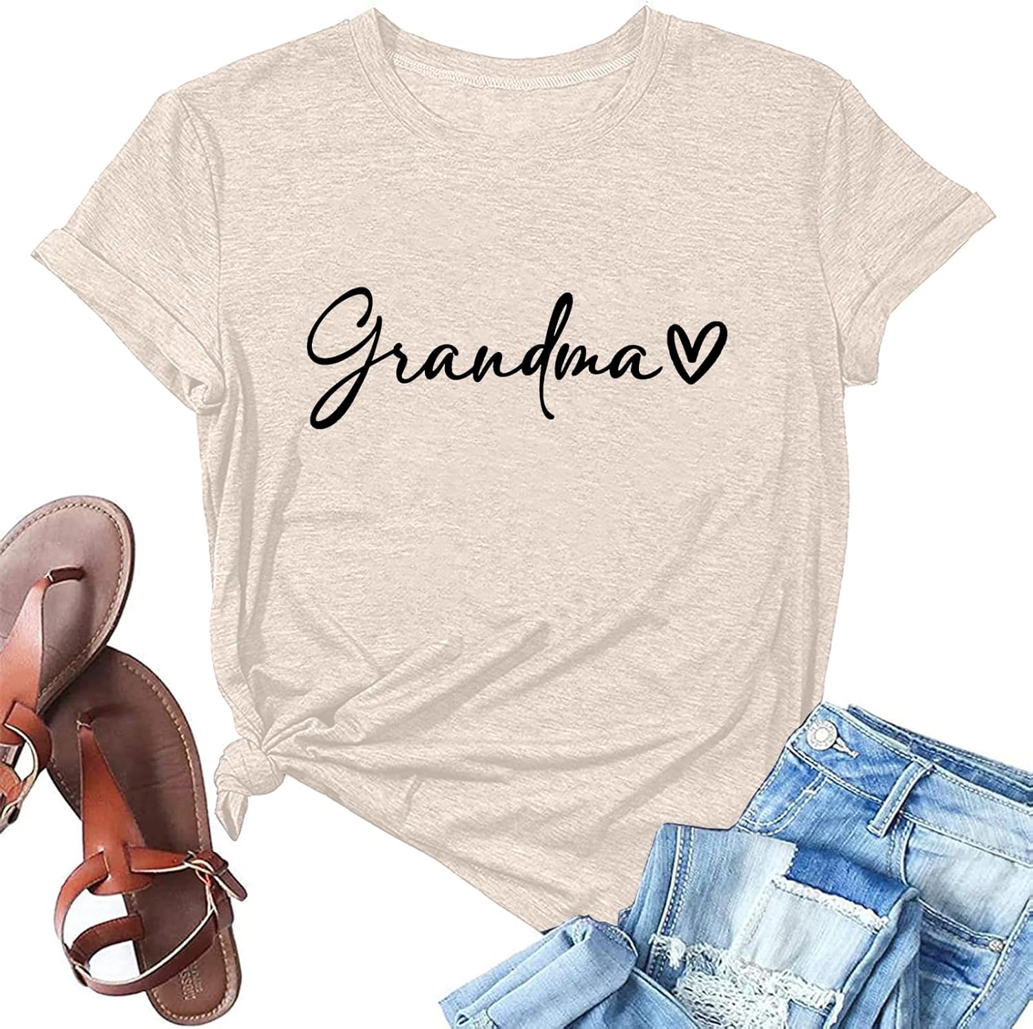 Grandma Shirts for Women Nana Shirt Heart Printed Casual Gigi Short Sleeve Tee Top