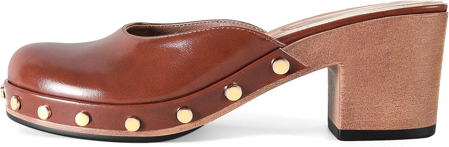 DOEYG Platform Chunky Clogs for Women Round Toe Block Heels Mule Shoes Dressy Comfortable Casual Slip on Mule with Metal Stud