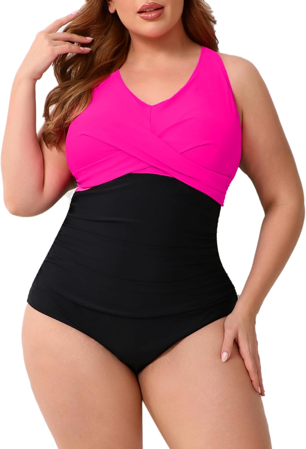Halcurt Plus Size One Piece Swimsuit for Women Twist Front Tummy Control Full Coverage Retro Bathing Suit