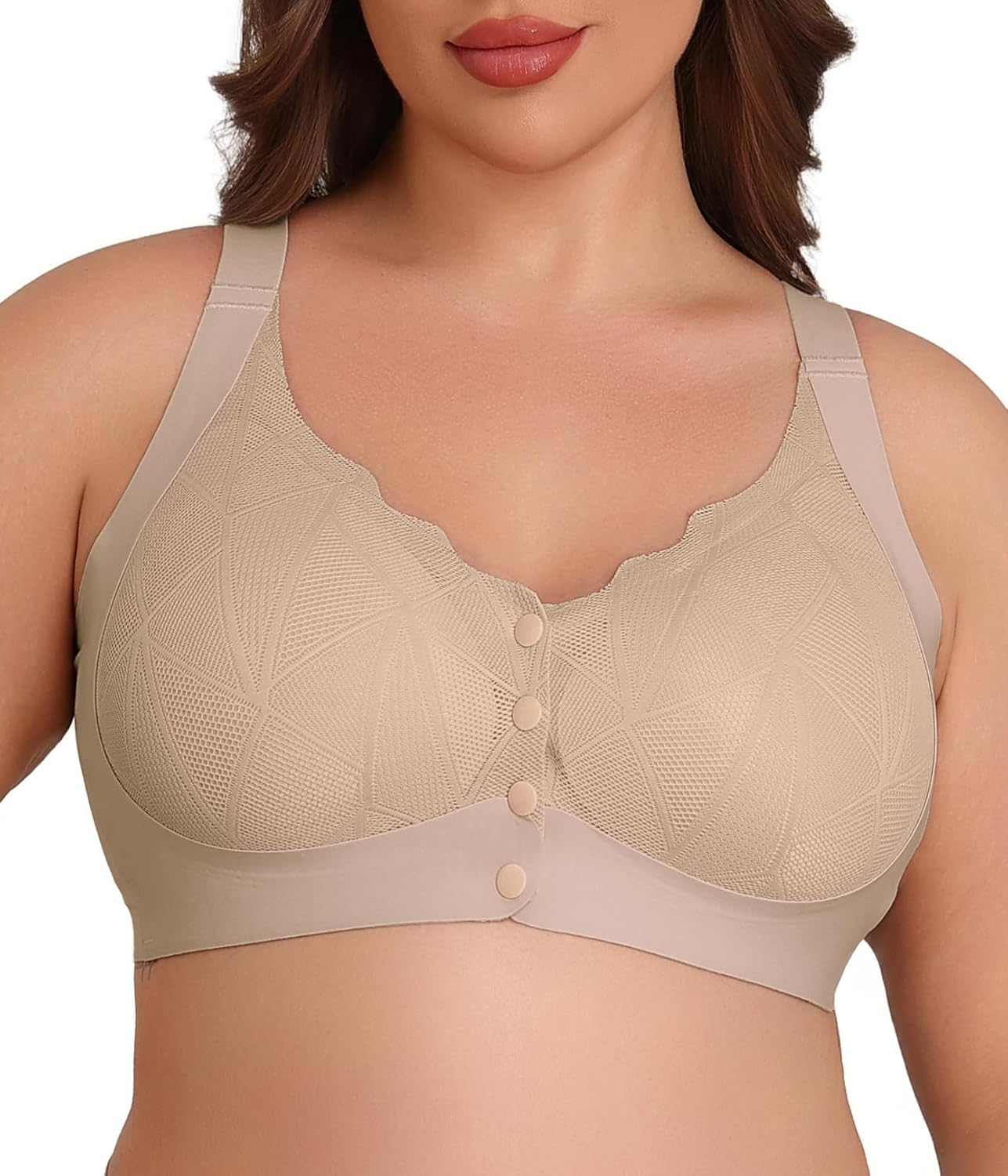 Lastshe Women Plus Size Front Closure Lace Seamless Bras Full Coverage Comfort Support Bralette Everyday Bra No Underwire