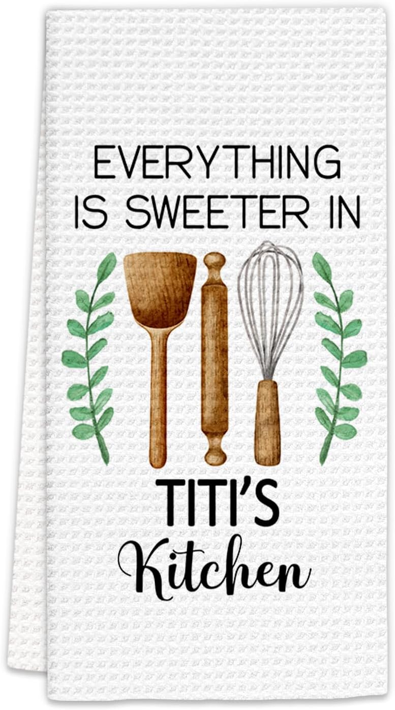 Titi Gifts Kitchen Towels, Gifts for Titis Aunt Auntie Aunty Decorative Dish Towels, Titis Gift from Nephew Niece Hand Towel for Kitchen, Everything is Sweeter in Titi’s Kitchen Decor(16x24 in)