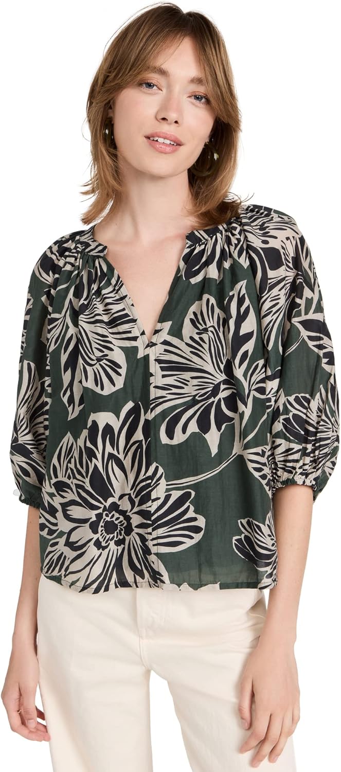 Velvet by Graham & Spencer Women's Paola Printed Silk Cotton Voile Puff Sleeve Blouse