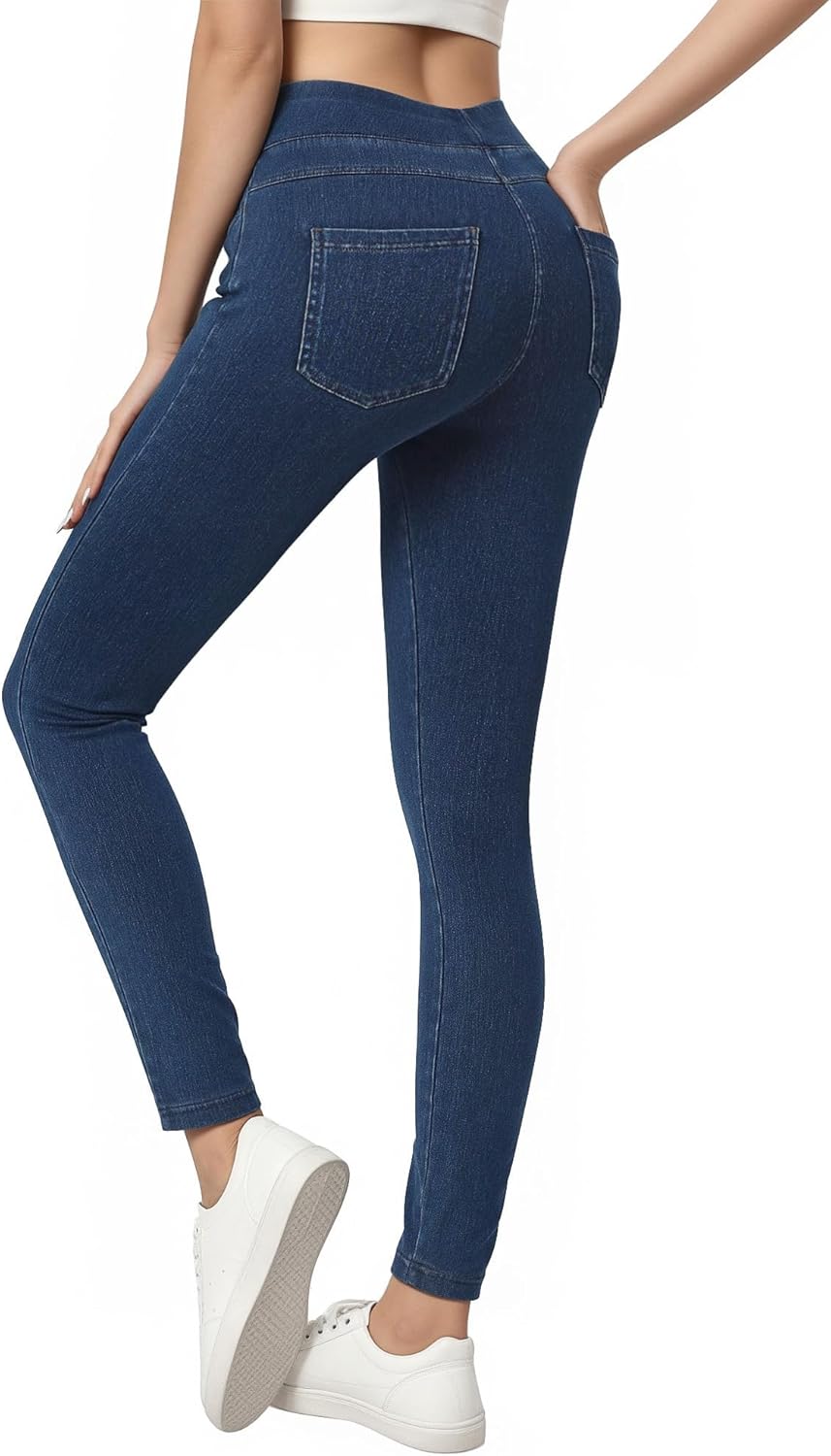 Jeggings for Women with Pockets Tummy Control Stretchy Skinny Jeans Pull On High Waisted Butt Lifting Denim Leggings