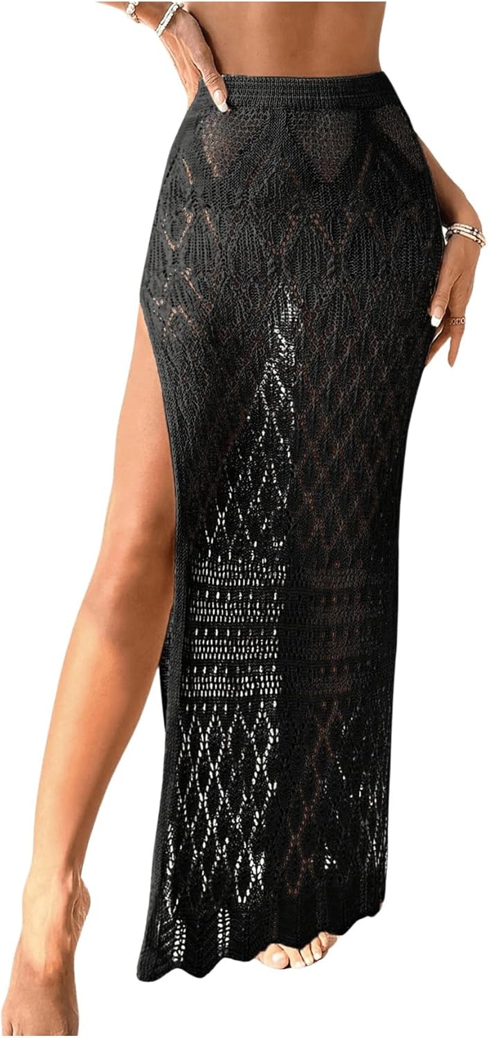 SHENHE Women's Crochet Swim Cover Up High Slit Sheer Long Beach Skirt Cover Up