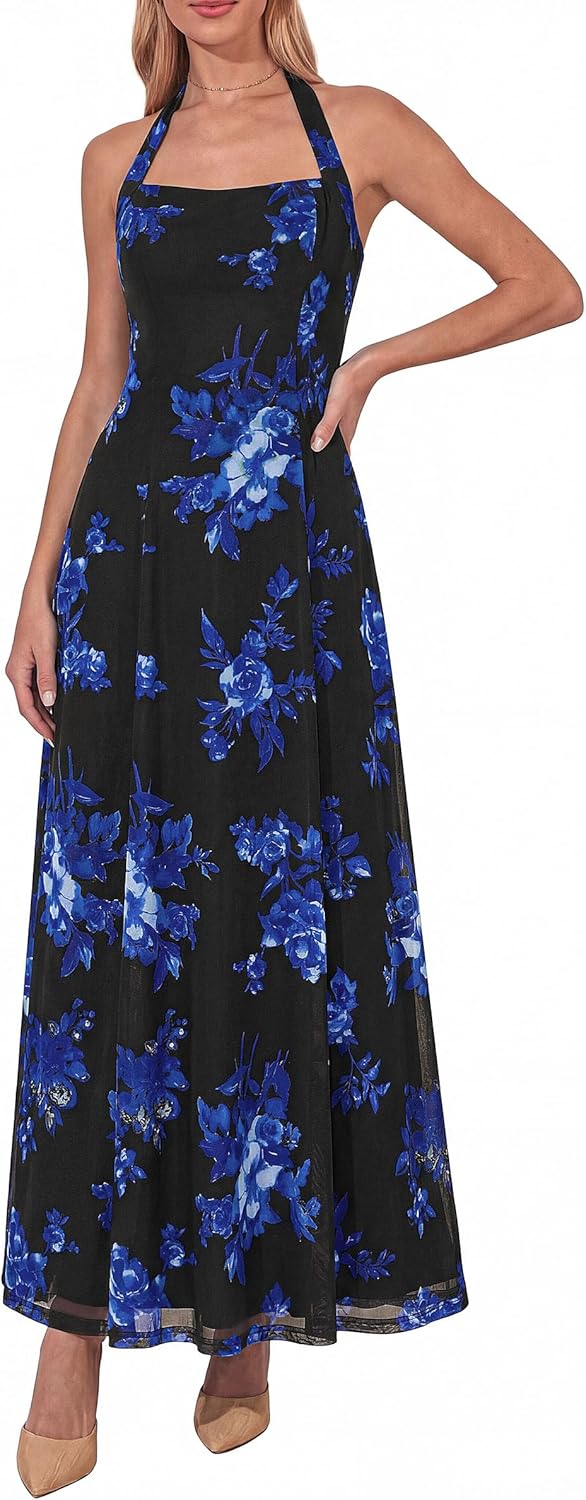 KIRUNDO Women Halter Floral Maxi Dress 2026 Summer Wedding Guest Cocktail Party Sleeveless A Line Beach Vacation Sundress