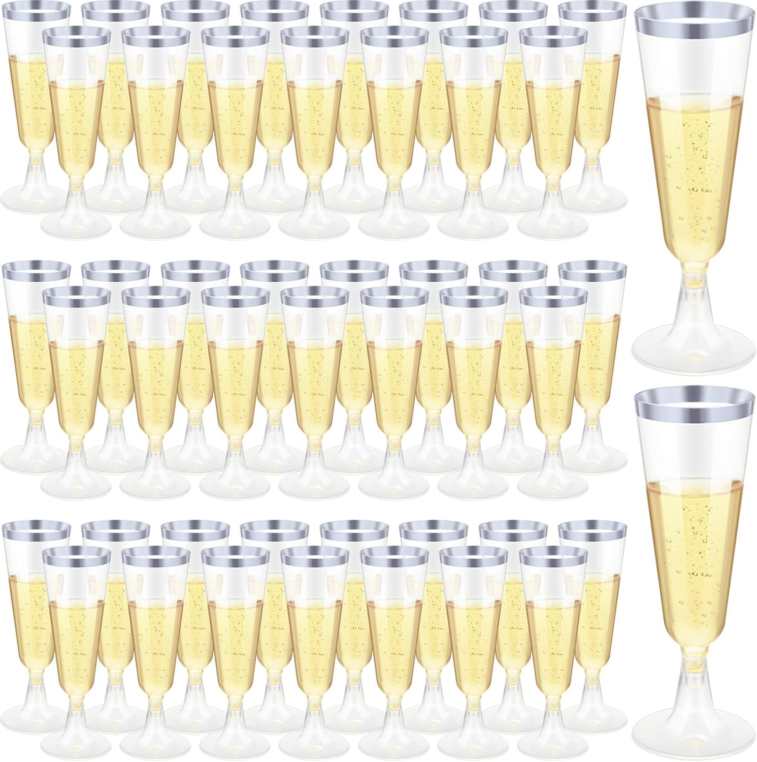 CHENGU 200 Pack Disposable Champagne Flutes, 5 oz Plastic Champagne Glasses Toasting Wine Flutes Cocktail Cups for Parties, Wedding, New Year's Eve for Celebration(Silver)