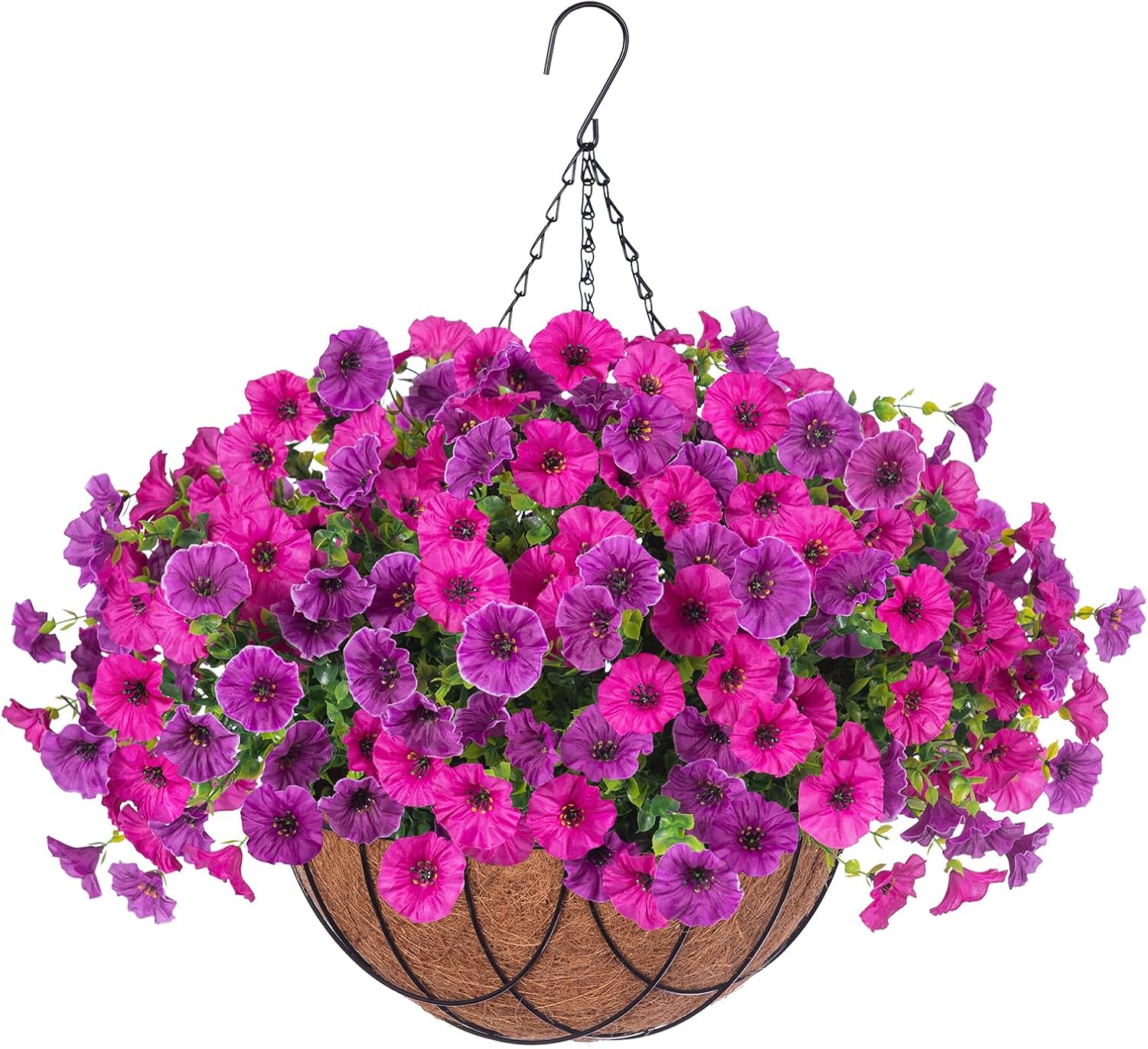 - Upgrade Process: Experience luxury upgrades in artificial hanging flowers. Crafted with silk-screened silk cloth, each flower head featured clear, beautiful lines and vibrant, long-lasting colors. Say goodbye to traditional plastic flowers that fade quickly; our blooms remain fresh and stunning year after year, offering a more realistic and perfect decorative effect in both indoor and outdoor spaces.