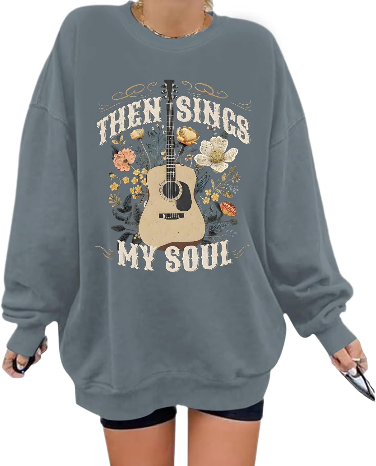 KIEKIECOO Oversized Christian Sweatshirts for Women Faith Bible Verse Printed Pullover Inspirational Music Long Sleeve Tops