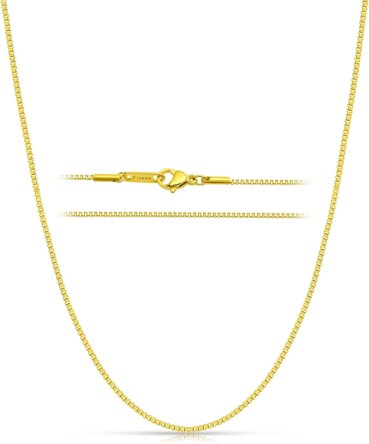 Fiusem 1.2mm Box Chain Necklace for Women, 16"-24" 18K Gold and Silver Plated Necklace Chain for Women, Thin Stainless Steel Chain Womens Chain 16, 18, 20, 22, 24 Inch