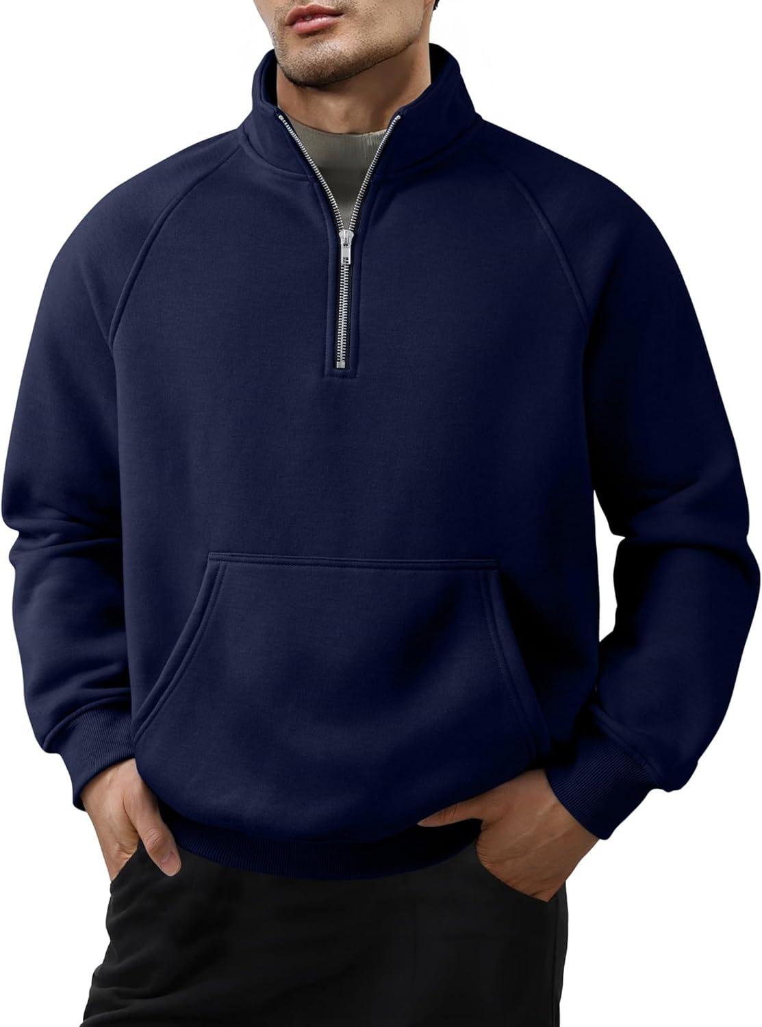 JMIERR Men's Fleece Quarter Zip Pullover Sweater Casual Cotton Fall Winter Family Outfit Warm Mock Neck with Pockets