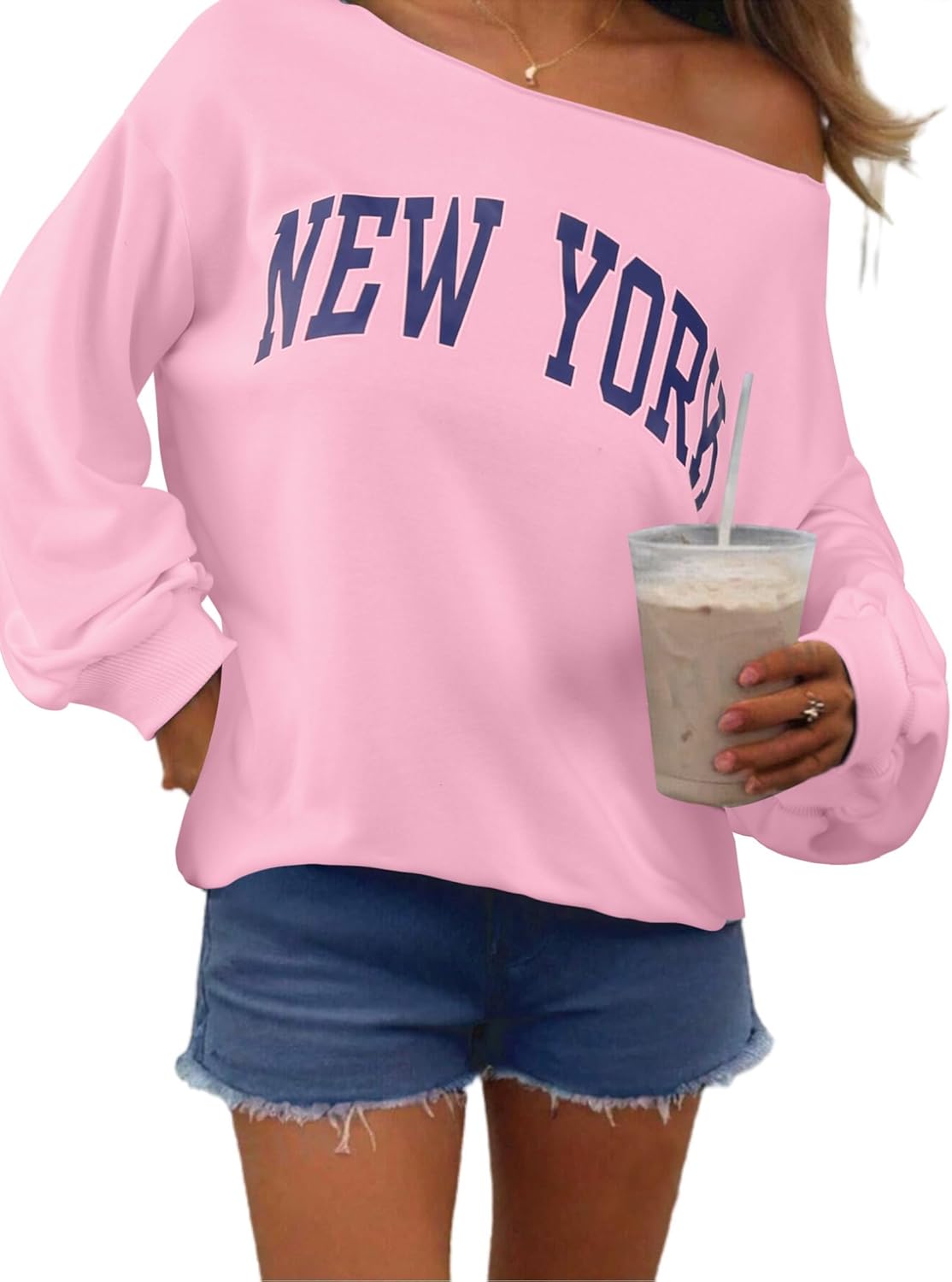Remidoo Womens Off Shoulder Sweatshirt Drop Shoulder Oversized Long Sleeve Pullover Top
