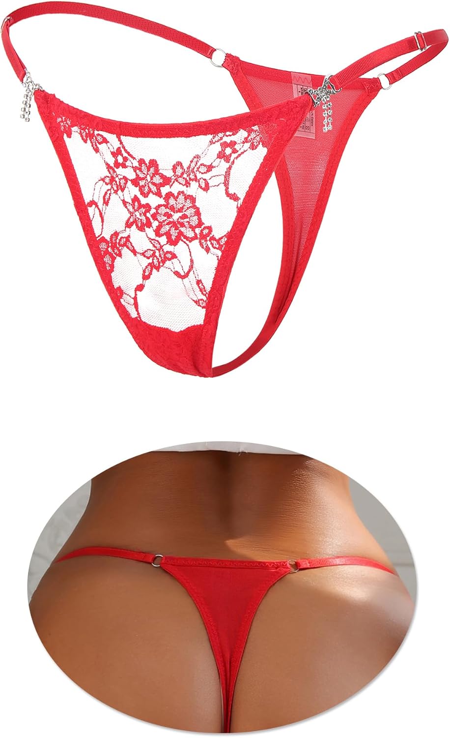 ohyeah Lace G-String Thongs for Women Adjustable Low Rise Panties with Rhinestones T-back Micro Thong Underwear