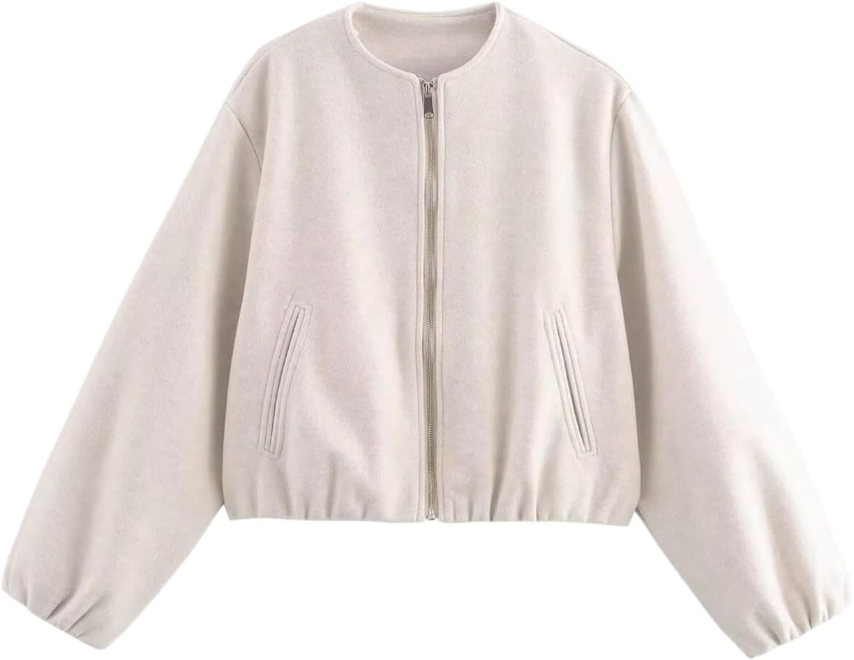 MakeMeChic Women's Bomber Jacket Crew Neck Long Sleeve Zip Up Oversized Coat Outerwear