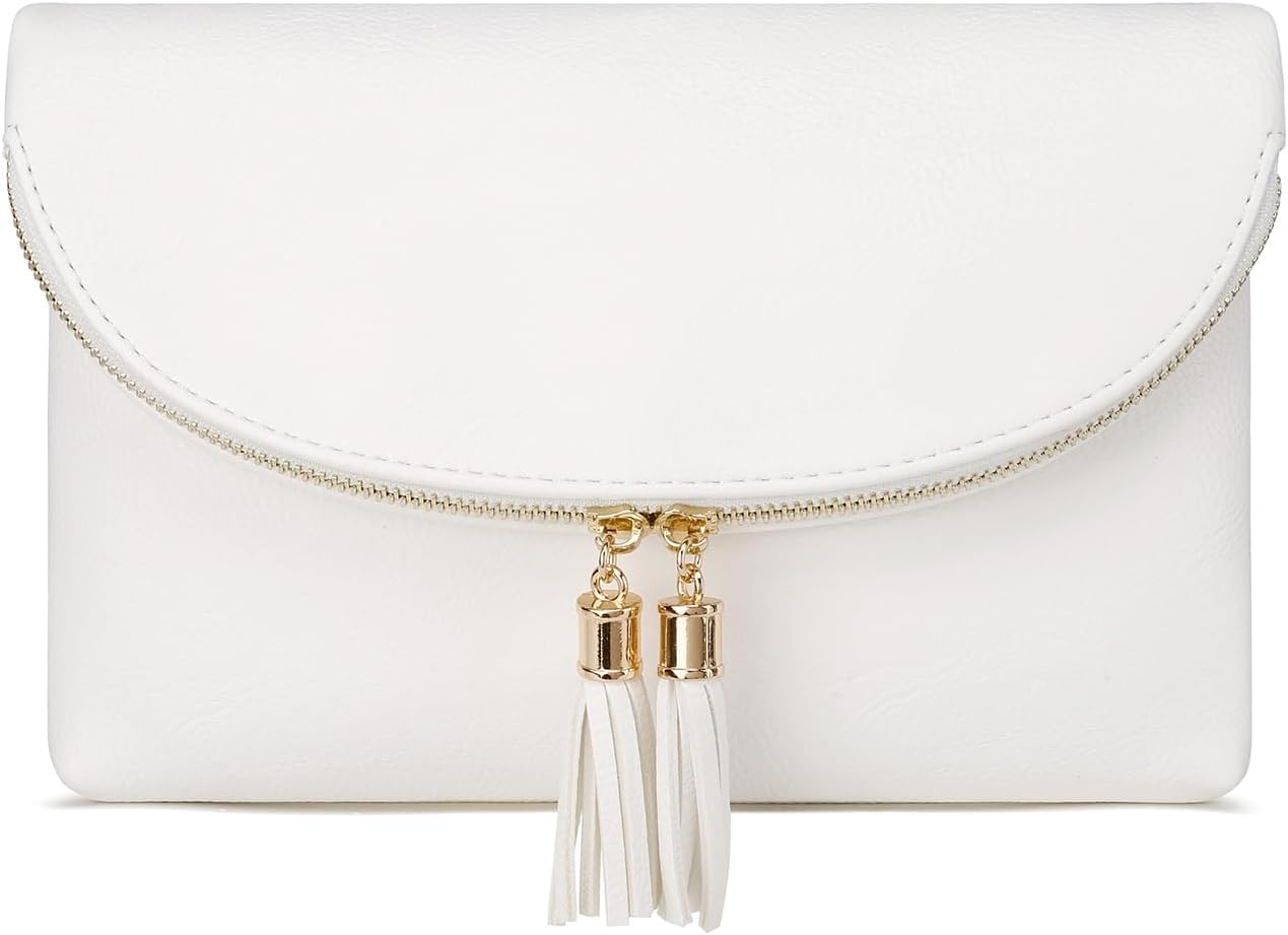 Solene Womens Envelop Clutch Purse Multi Compartments, 6 Card Slot Inside, Crossbody Bag With Tassels