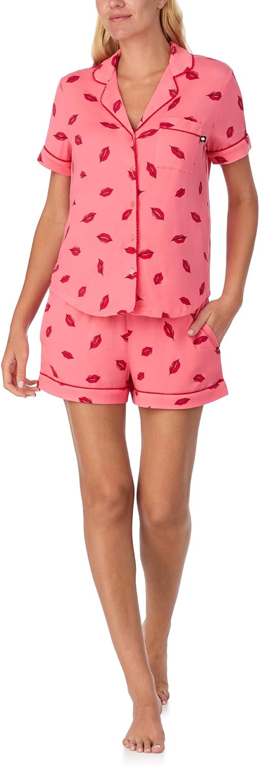 kate spade new york Pajamas for Women 2 Piece Set Comfy Modal Classic Short Sleeve Notch Collar Button Top & Shorts
