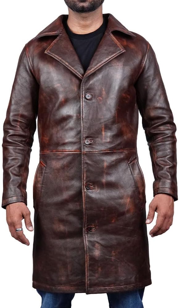 Desired Men's Trench Black Full Body Genuine Leather Duster Overcoat Sheepskin Long Coat Glossy Coat