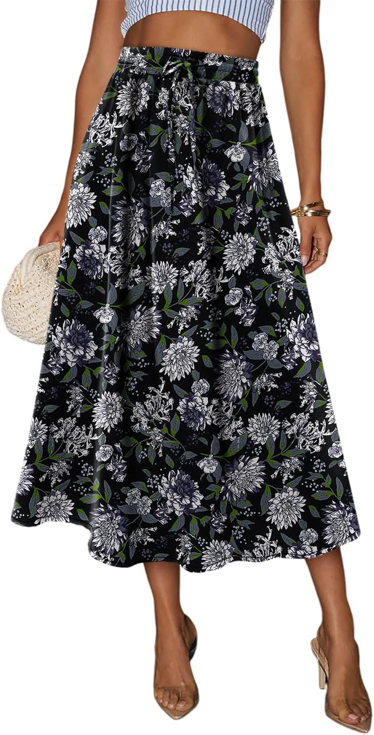 Magritta Women's Print Midi Skirt with Pocket Elastic High Waist 2026 Trendy A-Line Bohe Leopardr Swing Skirts for Women