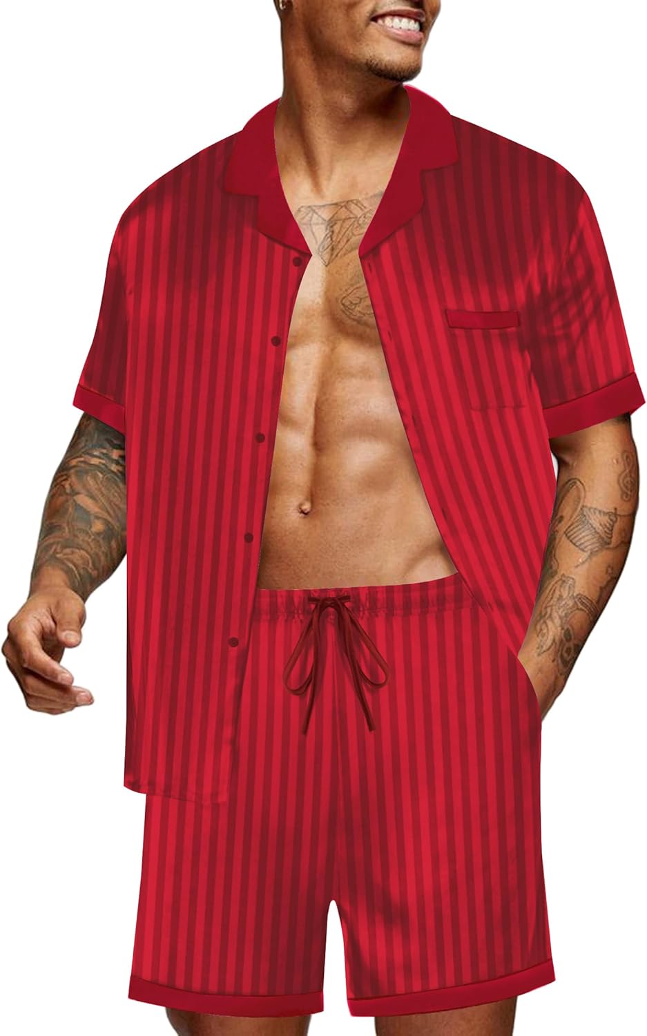 Ekouaer Men Satin Silk Pajamas Set with Pockets Sleepwear Shorts Satin Summer Loungewear 2 Piece Button Down Set S-3XL
