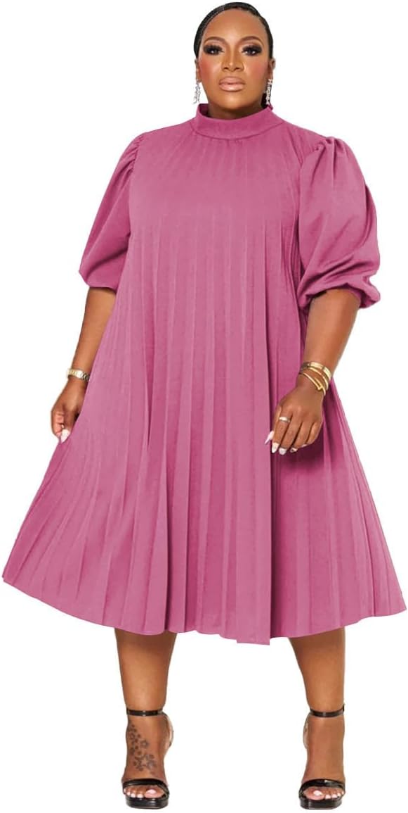 Women's Plus Size Casual Pleated Dress Summer Short Sleeve Flowy Swing Dress Loose Beach Dresses