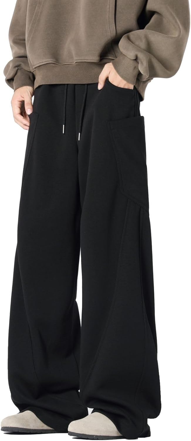 Men's Teen Y2k Baggy Wide Leg Sweatpants Acid Wash Loose Drawstring Elastic Waist Track Pants with Pockets