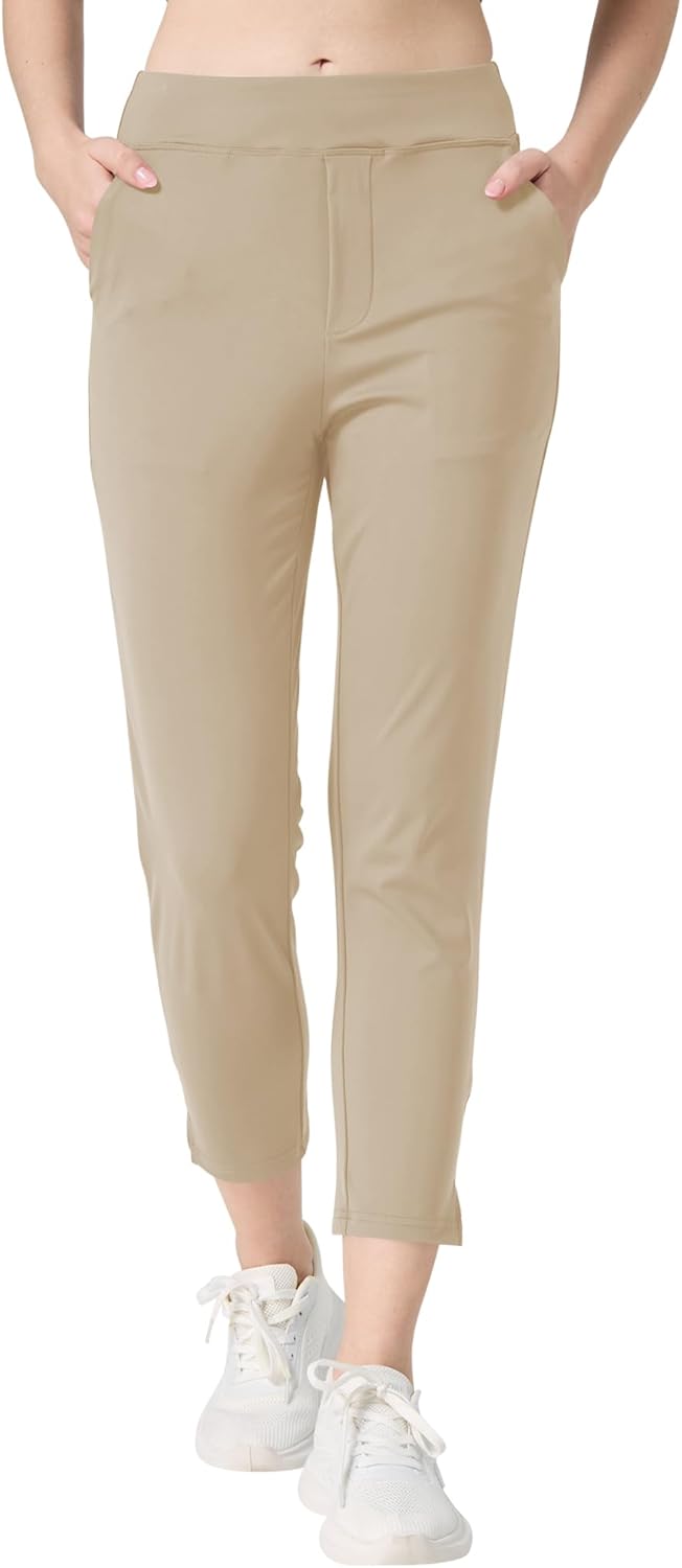 Women's 7/8 Ankle Pants, 25"/27" Stretch Petite Pants with Yoga Waistband & 3 Pockets for Golf Travel Casual Work
