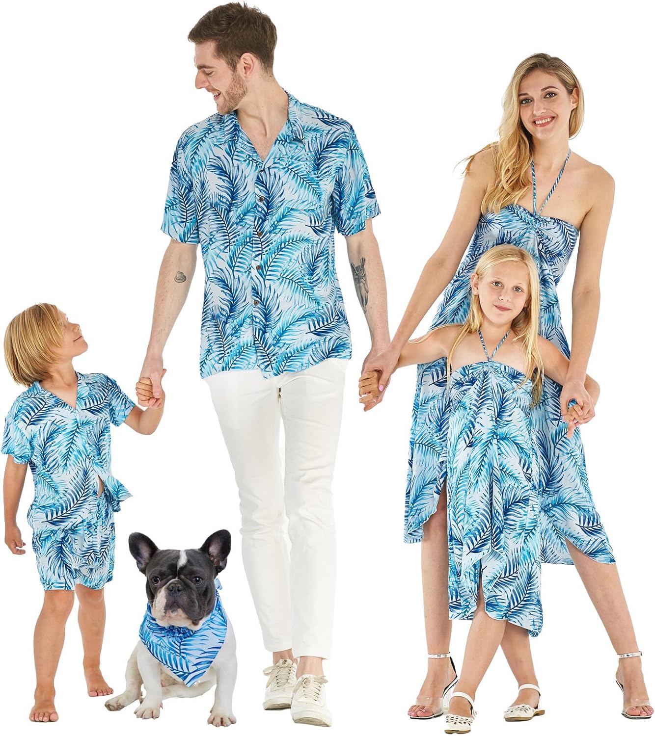 Matchable Family Hawaiian Luau Men Women Girl Boy Clothes in Simply Blue Leaves