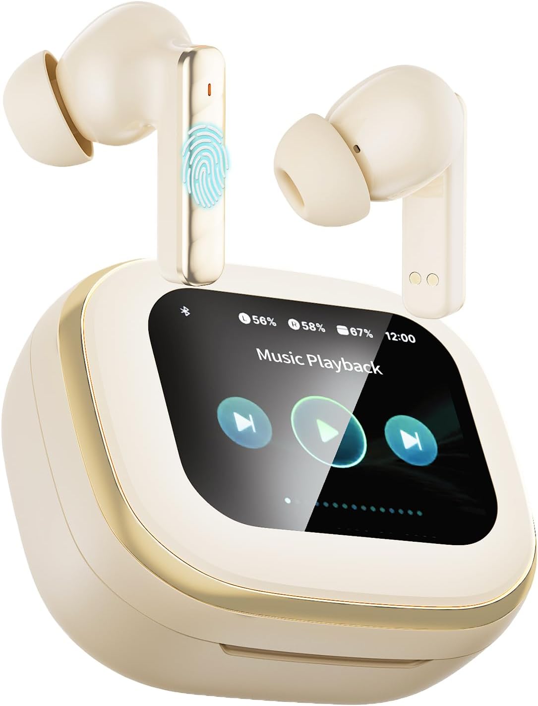 - Next-Gen Touchscreen Earbuds for Seamless Control: Wireless earbuds featuring a Smart Multifunctional Touch Screen Charging Case offer a revolutionary listening experience. Unlike traditional models, noise cancelling earbuds with this design let you control volume, skip tracks, manage calls, and even locate your ear buds—all directly from the case, no phone needed. A smarter, more convenient way to stay in control
