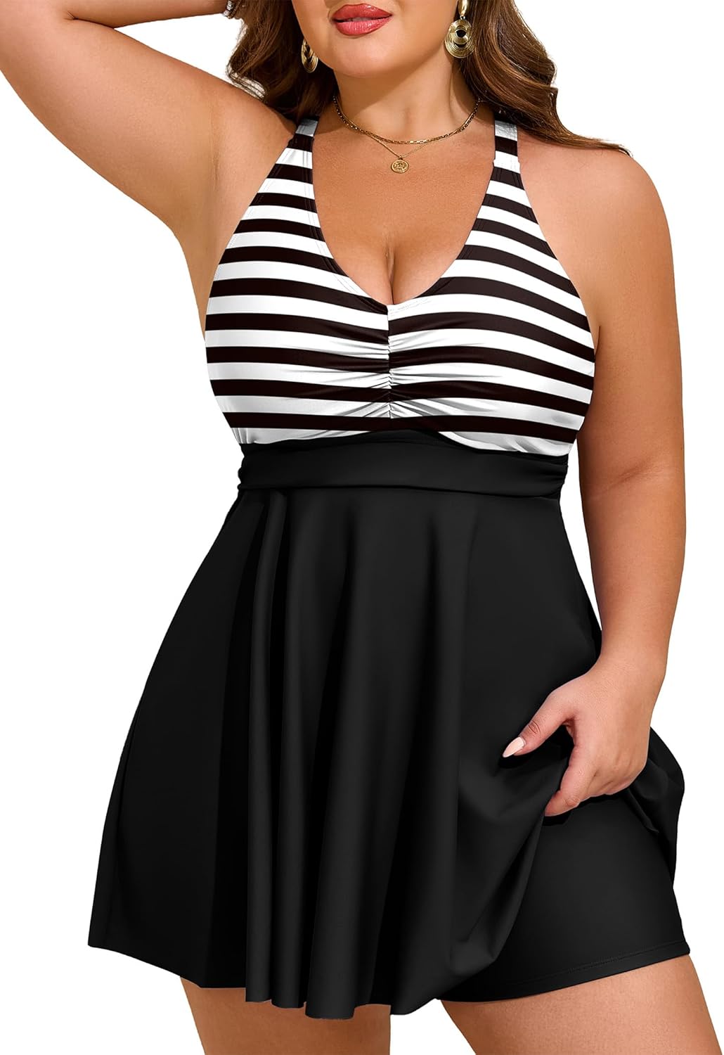 HUSKARY Plus Size Tankini Swimsuits for Women Tummy Control V Neck Hide Belly Bathing Suits Two Piece with Swim Shorts