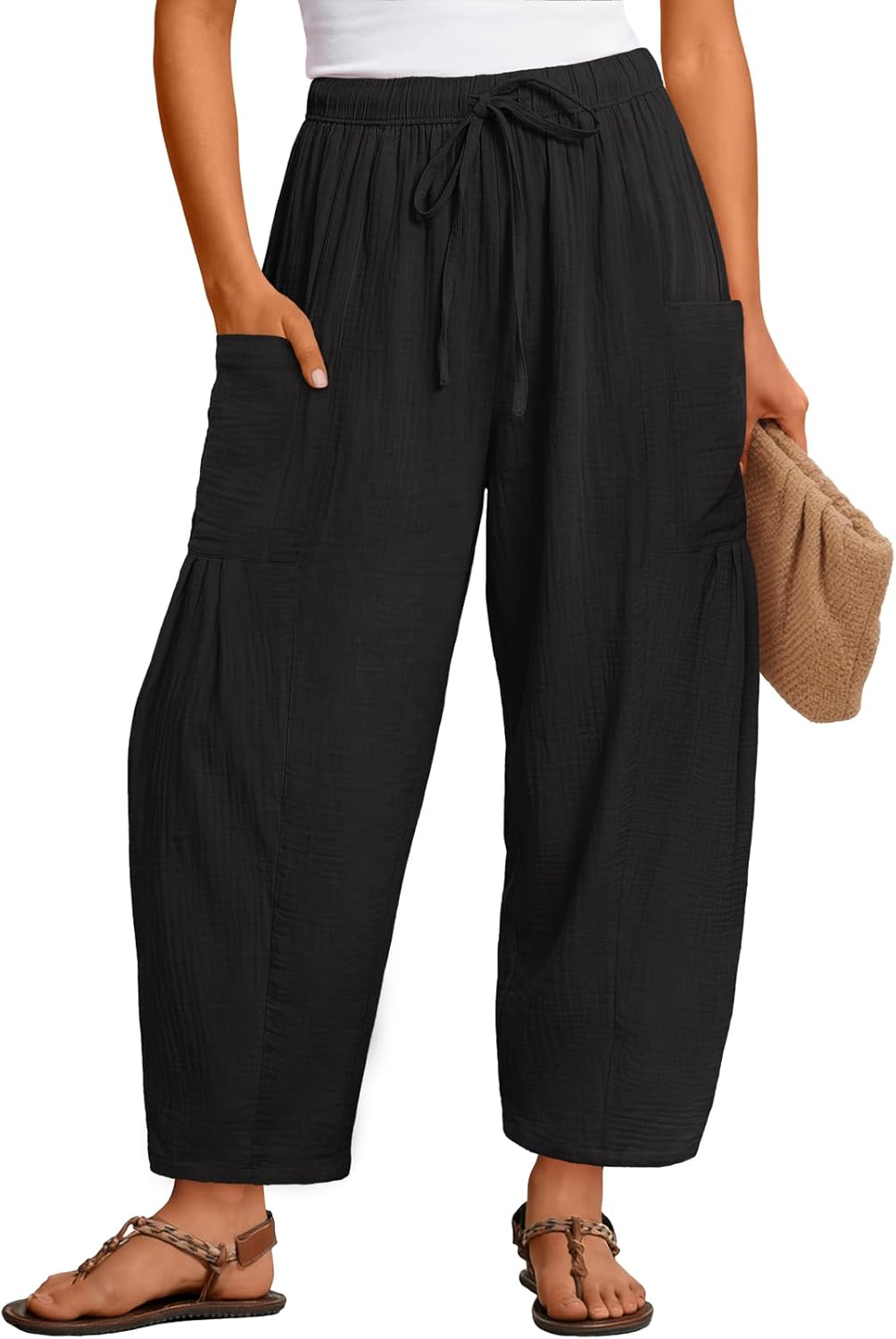 MEROKEETY Women's Linen Wide Leg Pants Summer 2026 Casual Loose Beach Vacation Baggy Palazzo Barrel Pant with Pockets