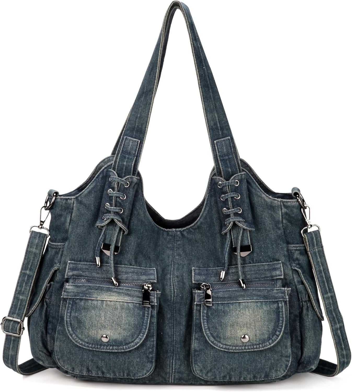 Casual Washed Denim Shoulder Bags Top Handle Lady's Hobo Bags Women Purses And Handbags