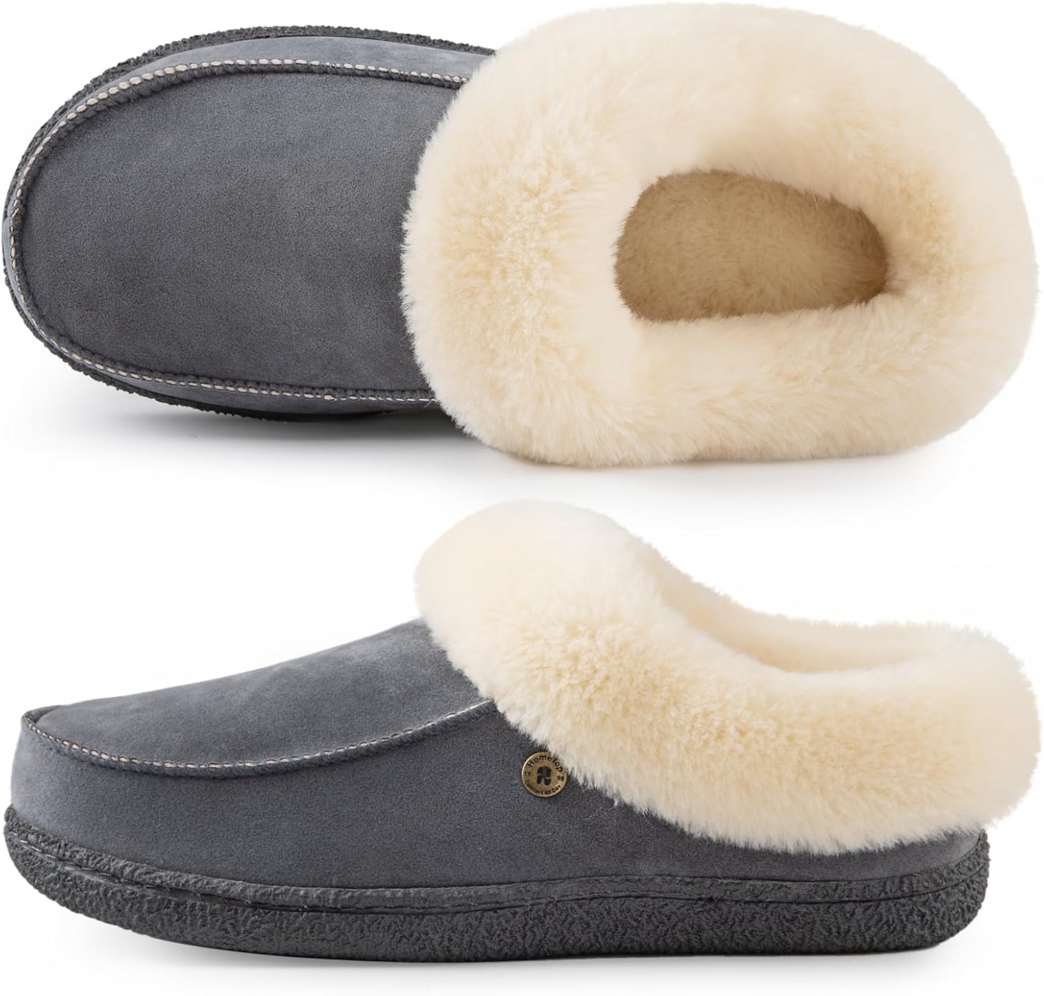 HomeTop Women's Comfy Moccasin Style Memory Foam Slip on Slippers Soft Microsuede Clog House Shoes with Luxury Fuzzy Fur Collar
