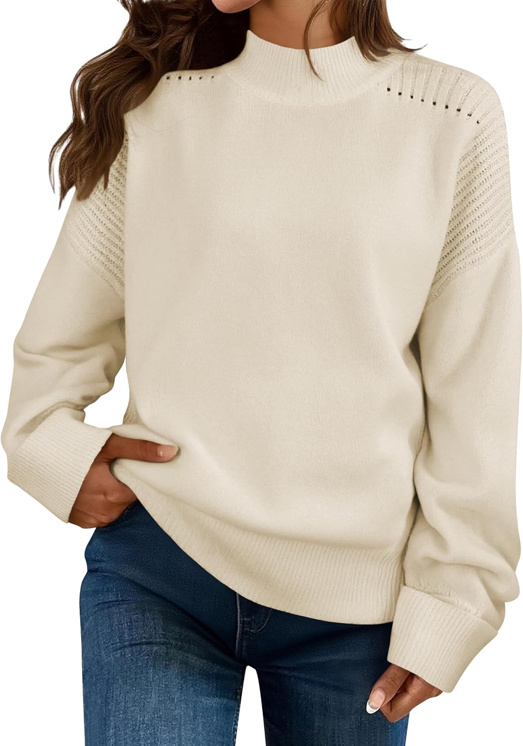 Zyyfly Womens Oversized Mock Neck Sweater Chunky Loose Long Sleeve Casual Fall Knit Pullover Sweaters