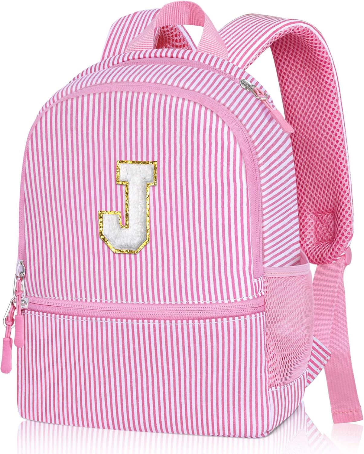 - 【Custom Monogram Design】: Personalize your loved one's backpack with their own initial! This special touch makes it a unique accessory they'll be excited to carry every day. Crafted from durable seersucker fabric, its perfect for school, family trips, or playdates. Roomy and comfortable, this backpack is designed to last through all their adventures.
