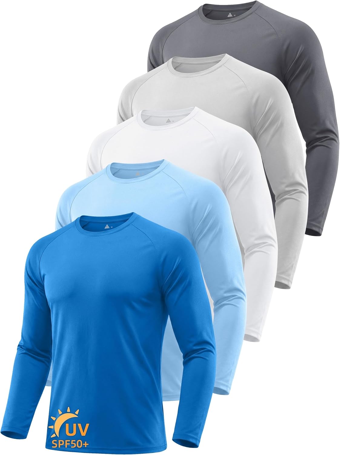 ZITY 5 Pack: Men's Long Sleeve Shirts UPF 50+ UV Sun Protection Quick Dry Athletic Shirts for Running Workout Rash Guard
