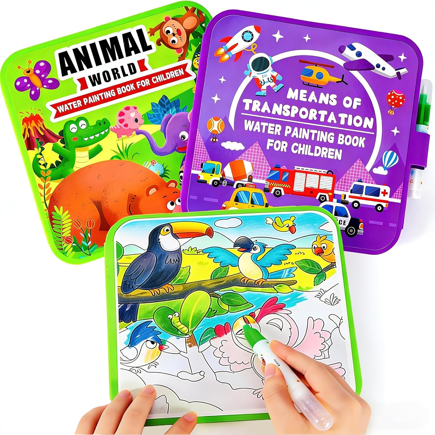 - Two Themed Books: Our 2-pack of water painting books with Animal and Transportation themes are a great alternative to coloring books for kids and perfect for toddler coloring
