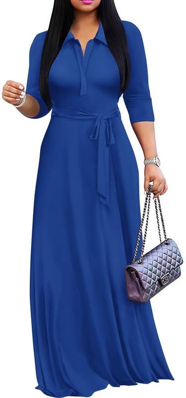 Maxi Dresses for Women Casual V Neck 3/4 Sleeve Long Church Dress Semi Formal Outfits with Pockets