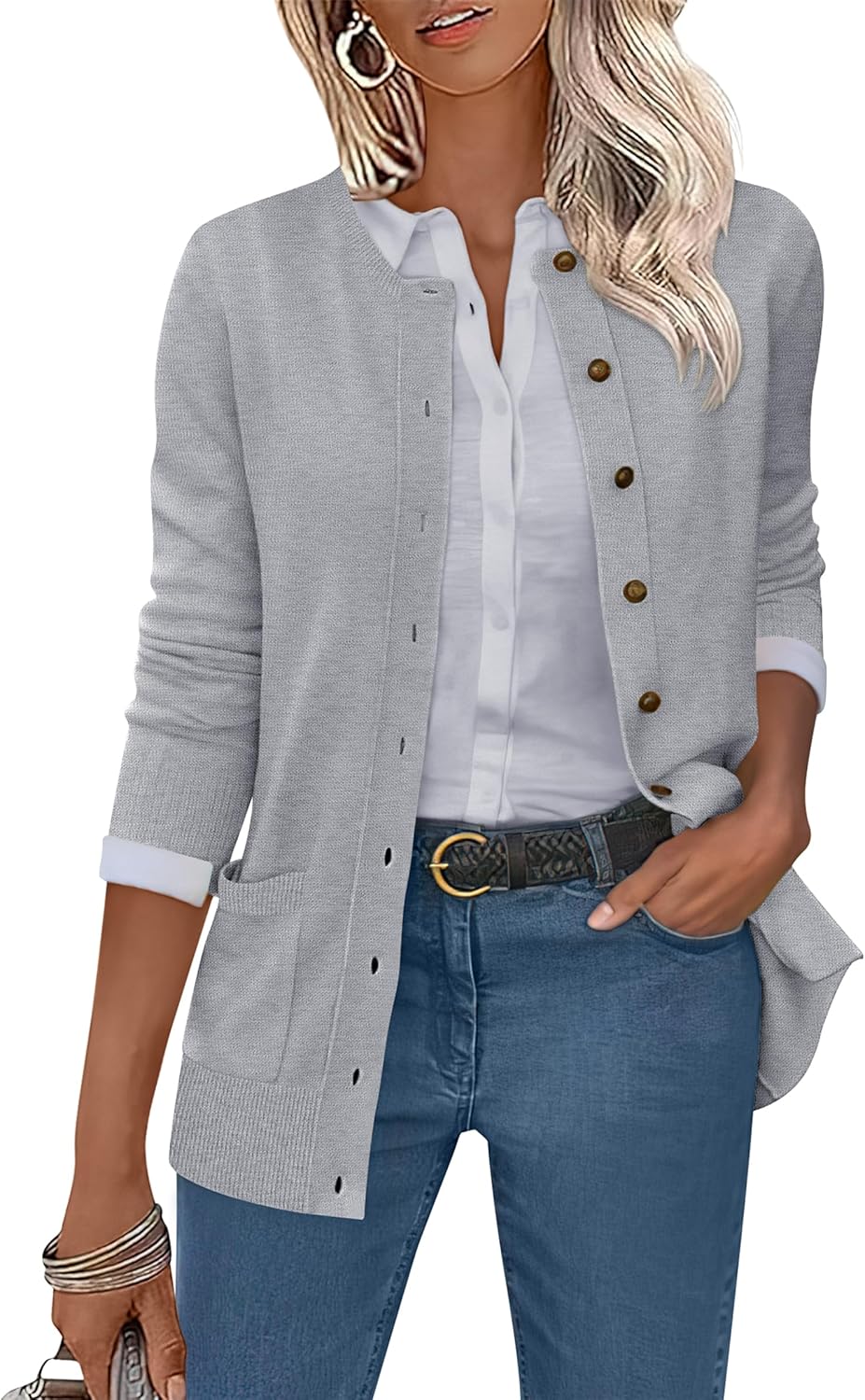 ANRABESS Women's Cardigans 2025 Fall Dressy Casual Long Sleeve Crewneck Button Down Open Front Soft Knit Cardigan Sweaters