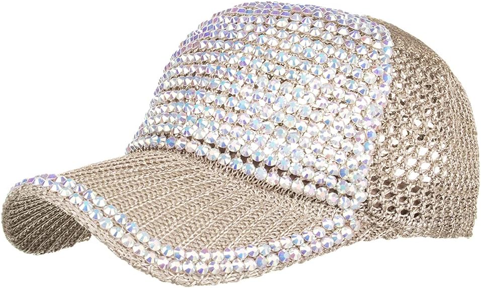 Women Men Studded Rhinestone Crystals Adjustable Ponytail Mesh Baseball Cap Shiny Bling Casual Sports Cap Breathable Sun Hat